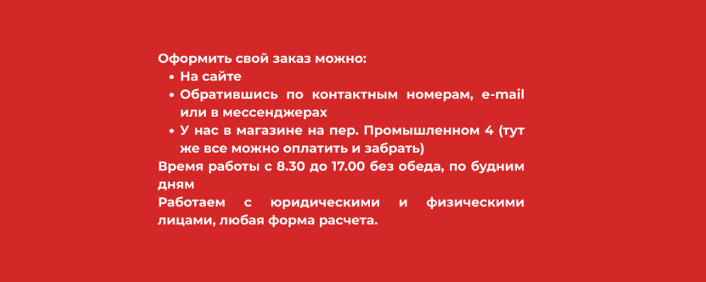 • заказать индивидуальный ассортимент продукции под ваши потребности;